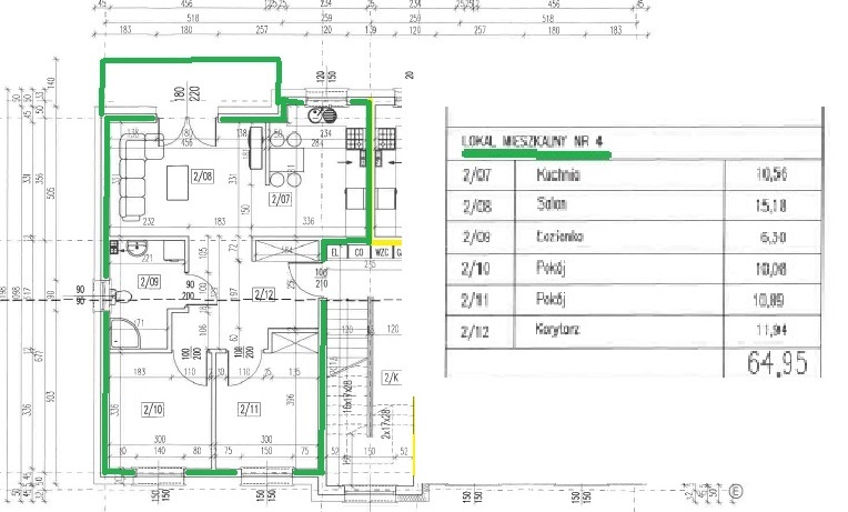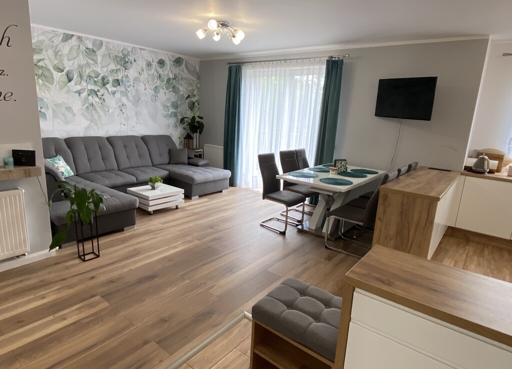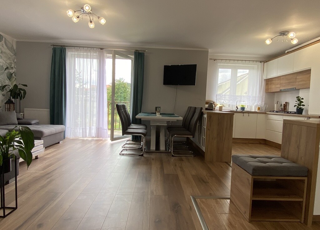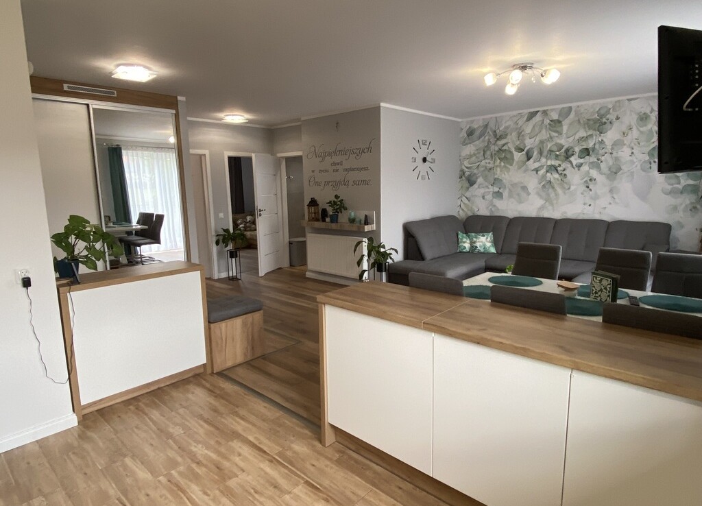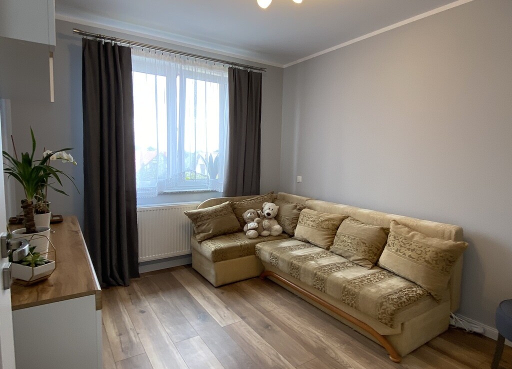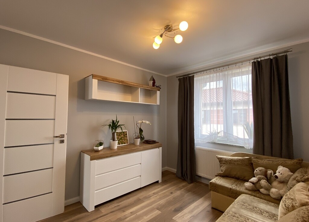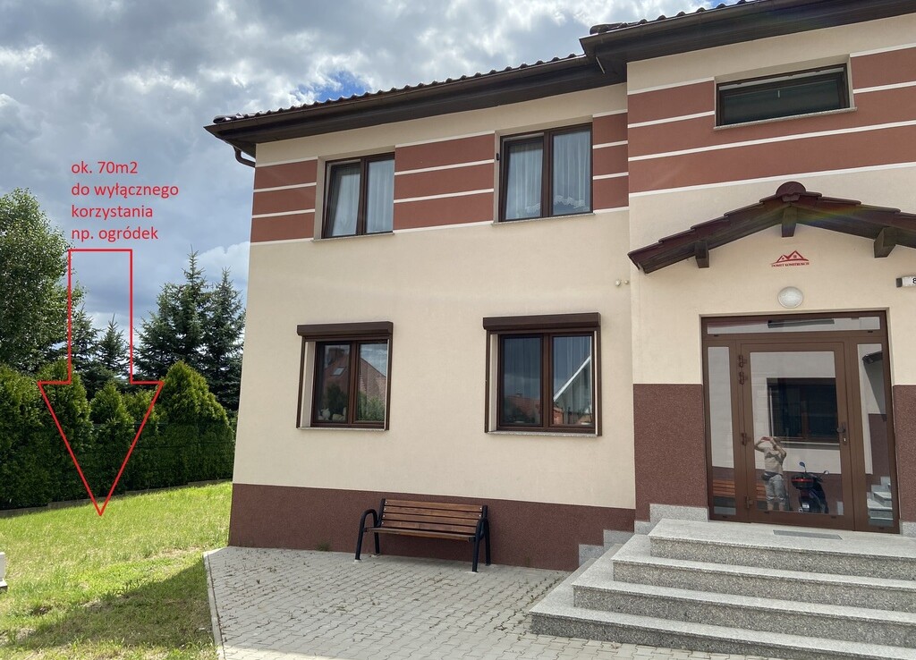 Mieszkanie 65 m2 (2 pokoje + salon z otwartą kucjnią), dodatkowo możliwość wyłącznego korzystania z działki obok budynku o powierzchni ok. 70m2.