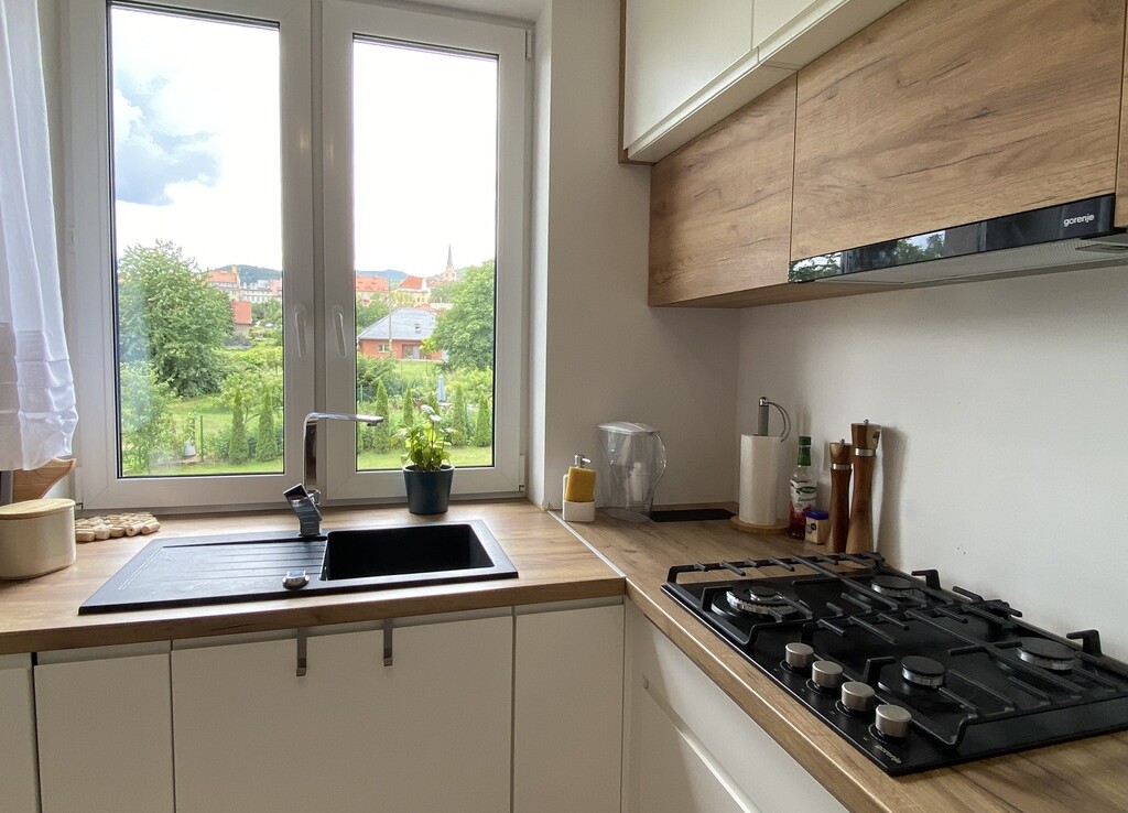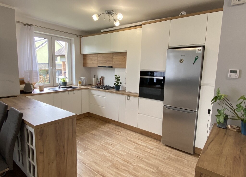 Kuchnia – ściana za blatem kuchennym posiada już szkło chroniące przed zabrudzeniami.